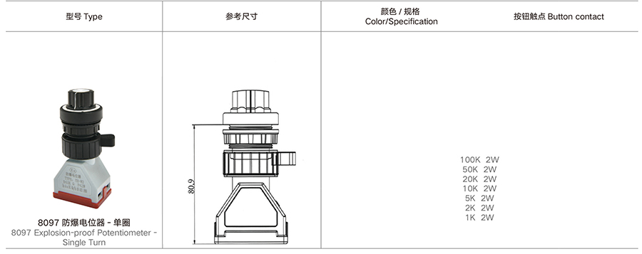 当前位置:主页 > 产品展示 > 8097 防爆电位器 - 单圈