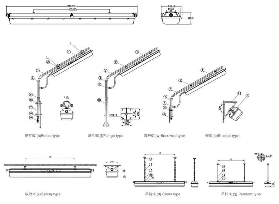 光源类型:LED 光源荧光灯管防爆独角灯管