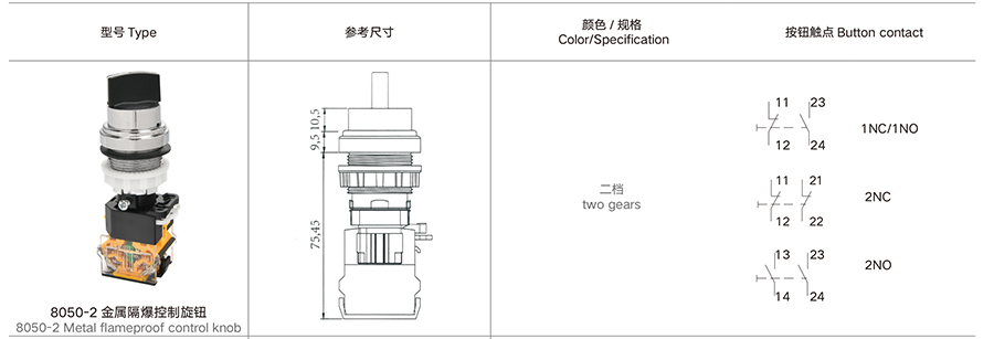 8050-2-2 金属 ( 不锈钢 ) 隔爆控制按钮