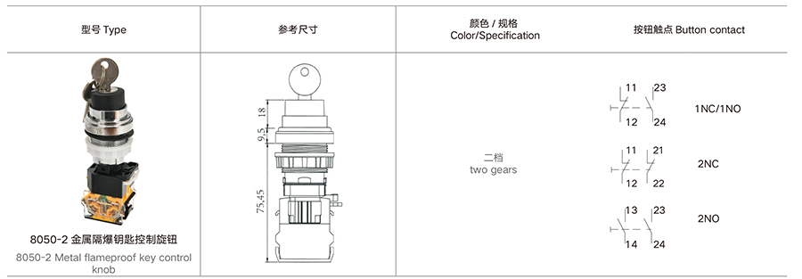 8050-2-2 金属 ( 不锈钢 ) 隔爆控制按钮