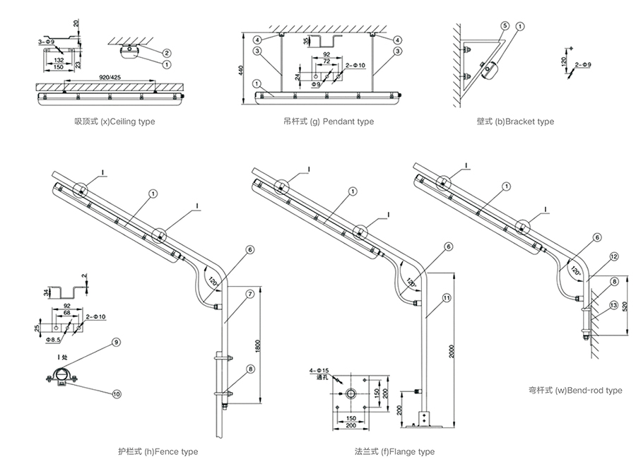 功率:1×9W、2×9W、1×18W、2×18W、3×18W